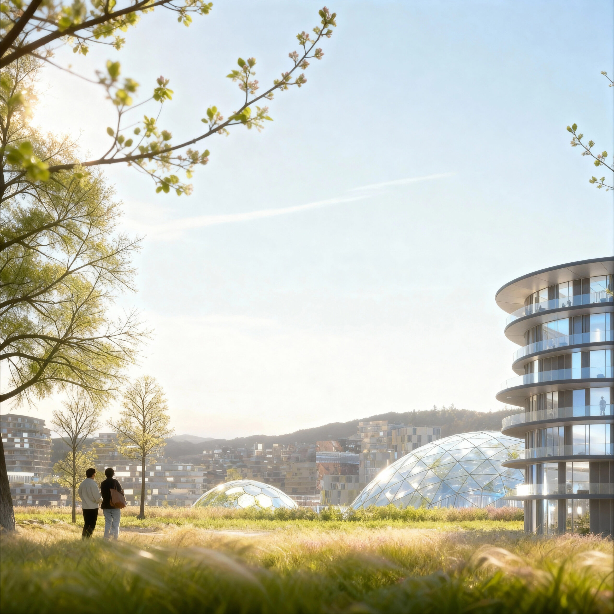The masterplan is based on a cellular framework that organises the city into living gradients, with density, programmatic diversity and urban vitality concentrated around the Amid Od, then progressively dissolving into gardens, farmland and steppe. This structure allows Hunnu City to absorb the challenges of an extreme climate, very cold winters, hot summers, strong winds, flood risks and hydrological imbalances, by combining ecological corridors, no‑build zones and landscape infrastructures for water retention and infiltration. Conceived as a city that learns, Hunnu City embeds resilience and circularity strategies at multiple scales, near‑zero‑energy urban cells, buildings designed for passive survivability, local and demountable materials, and intelligent technical networks organised as a smart grid to optimise resources.