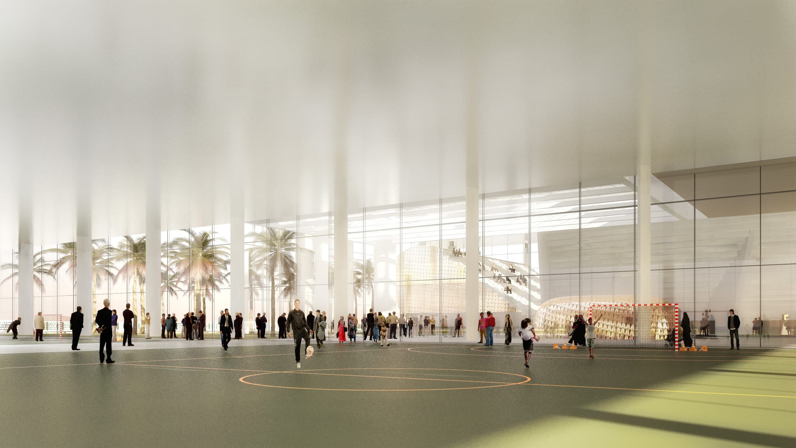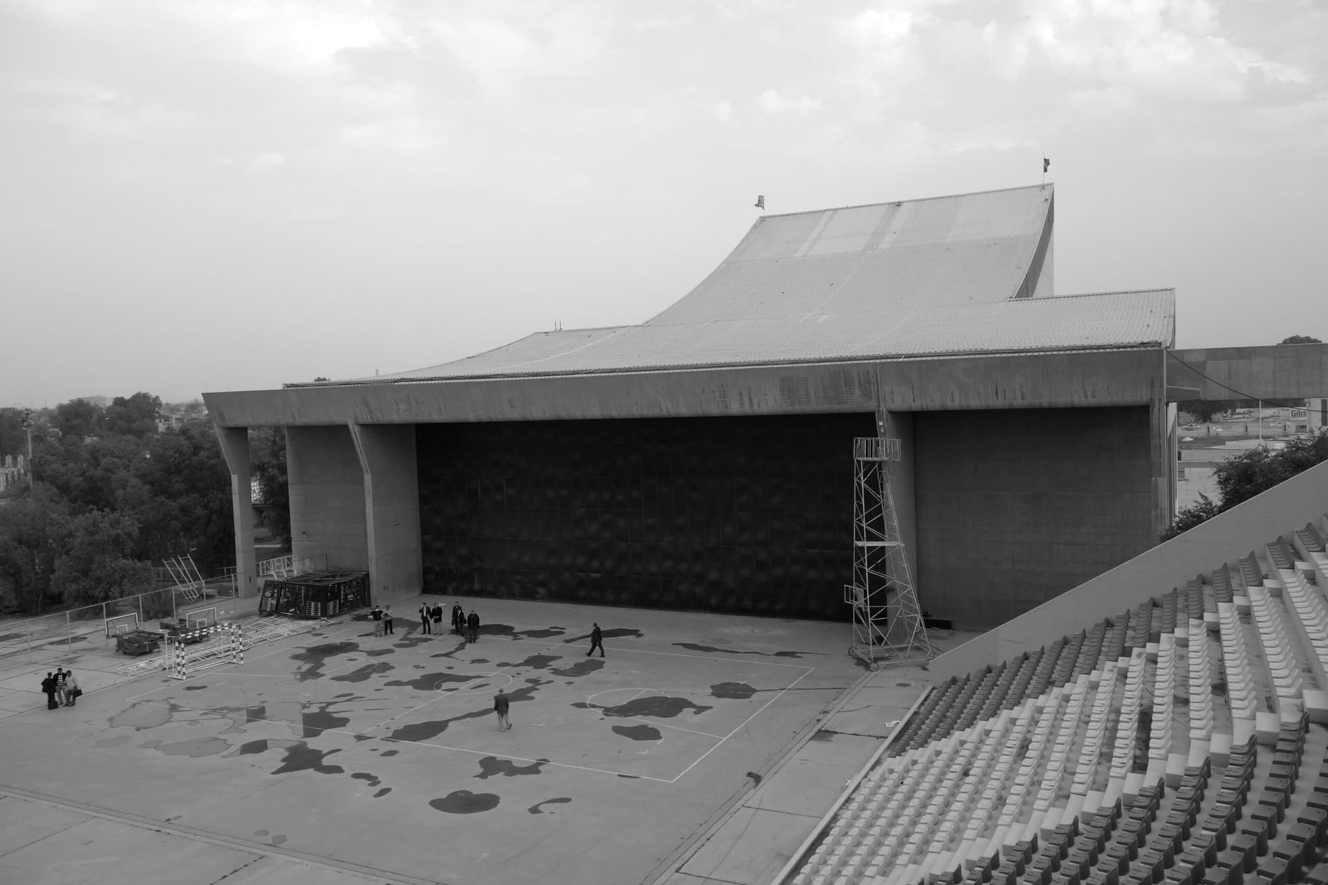 The agency was called by the iraqi ministry of youth and sports to restore the gymnasium designed by le corbusier and built by japanese architects in 1980, in order to cover its outdoor stands and add a multifunctional program: offices, seminars, covered sports fields, for a complex capable of accommodating 5,000 people. The geometry guided by the golden ratio and by the rediscovered traces allows to respect Le Corbusier's work.