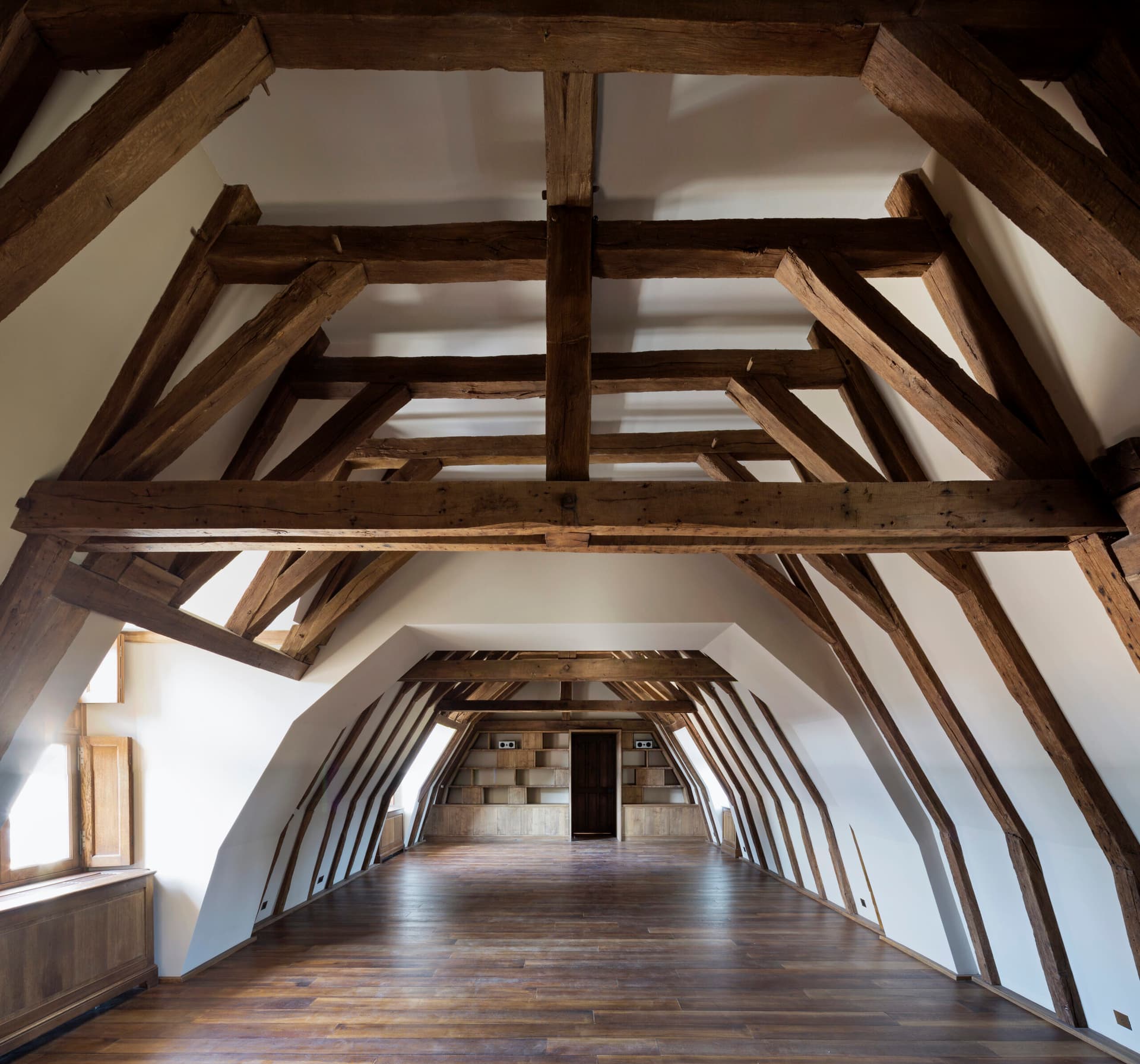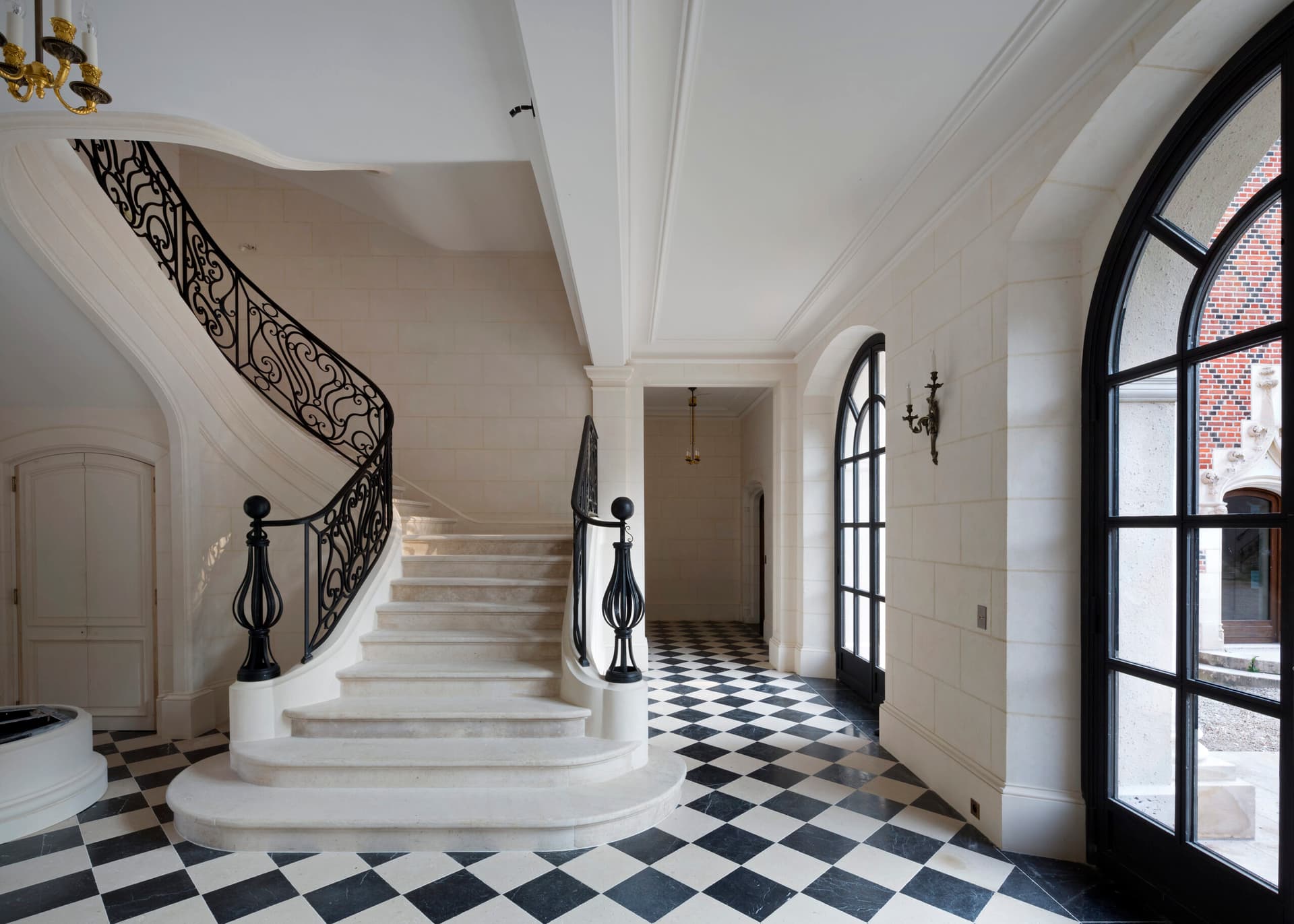 Dating from the 17th and 19th centuries, the château of domaine des pins was provided with a number of extensions notably at the beginning of the 20th century. These were removed during the rehabilitation work by A. Bechu architecture agency which was able to recreate a wing as well as a generous staircase. A horseshoe-shaped structure as well as the castle courtyard were rebuilt to meet the owner's requirements (bedrooms, cellar, hunting room and reception lounges). The service quarters were transformed into a spa and an indoor pool overlooking the landscape was added. The neighboring farm was restored to house maintenance staff.
