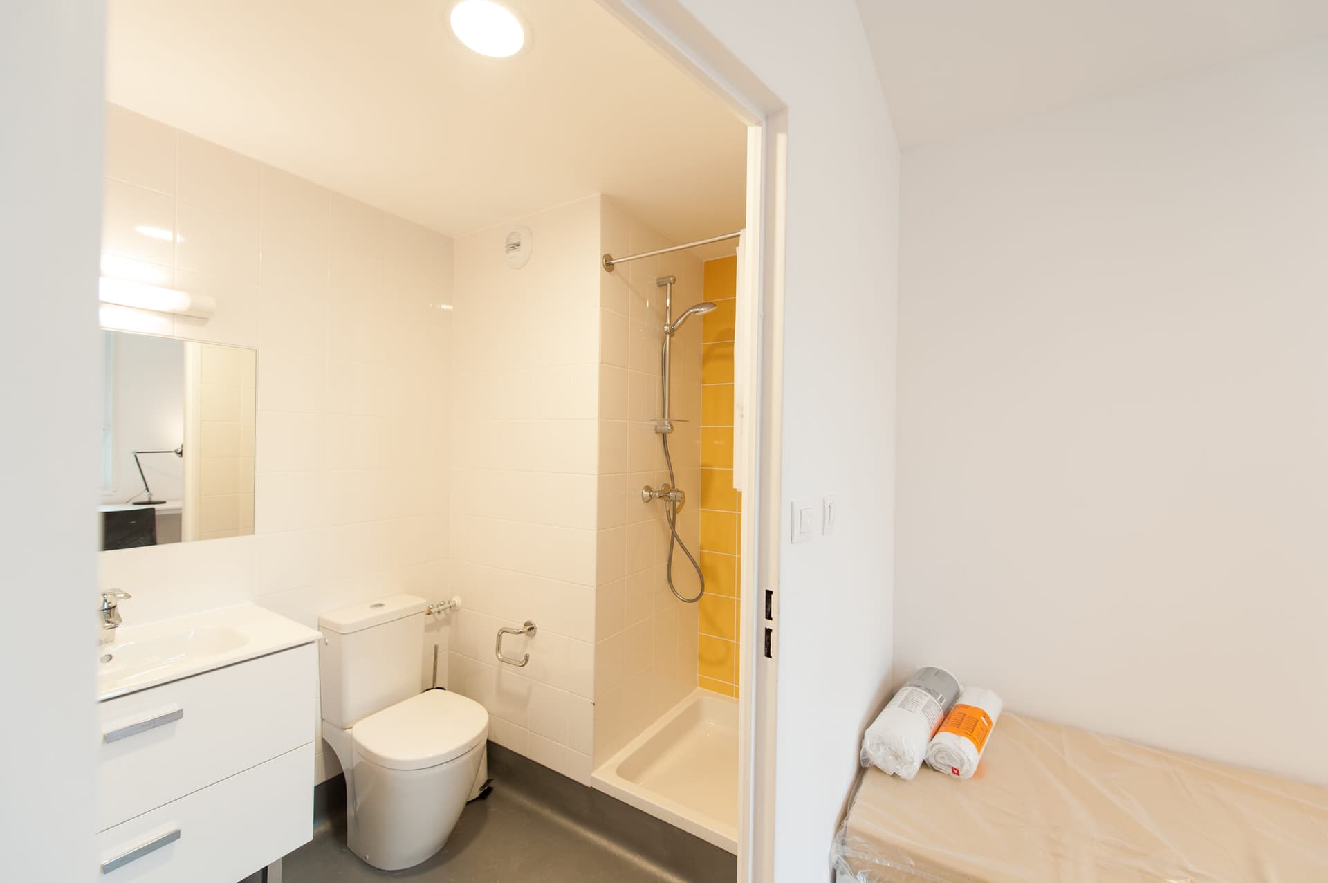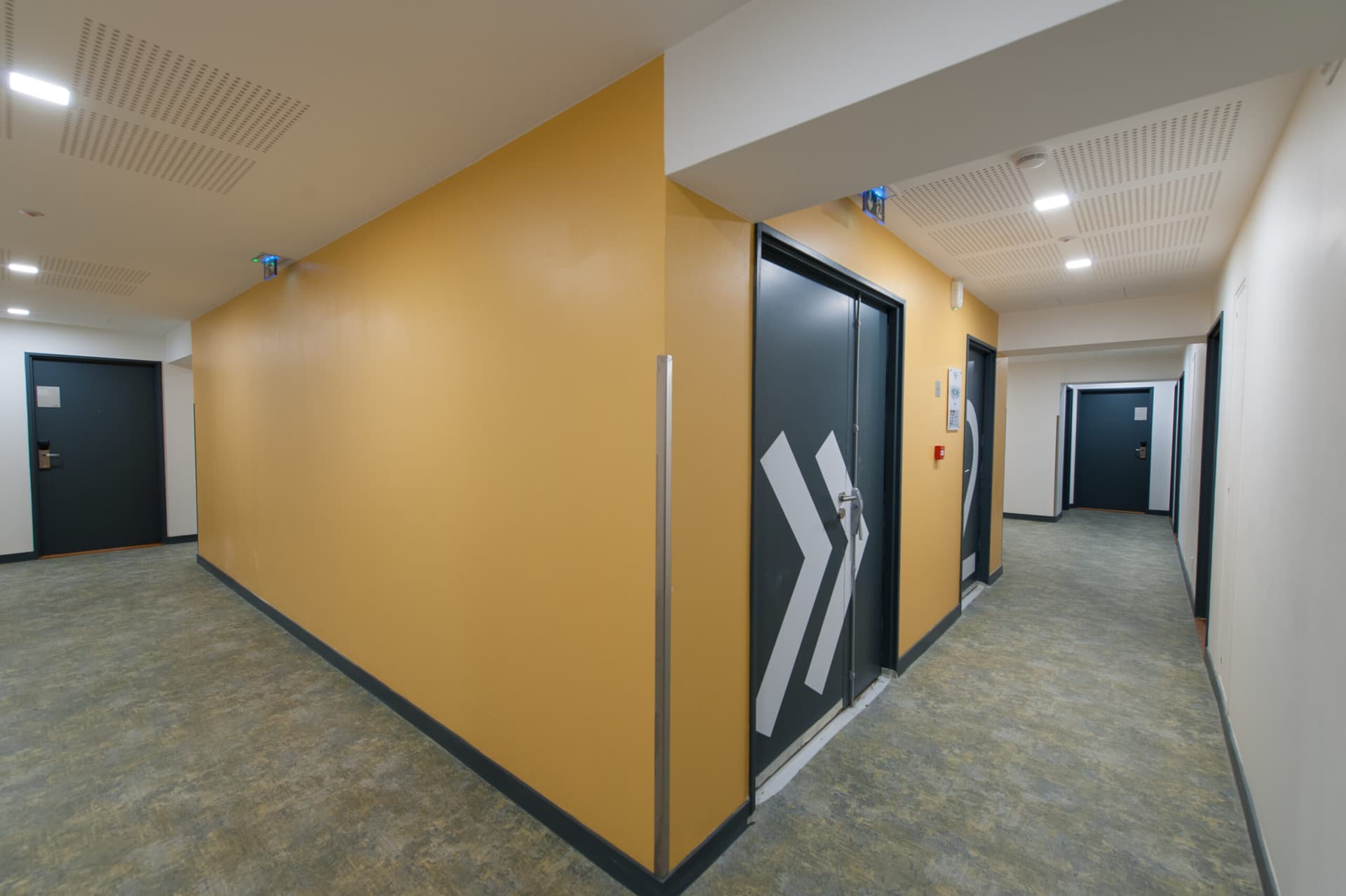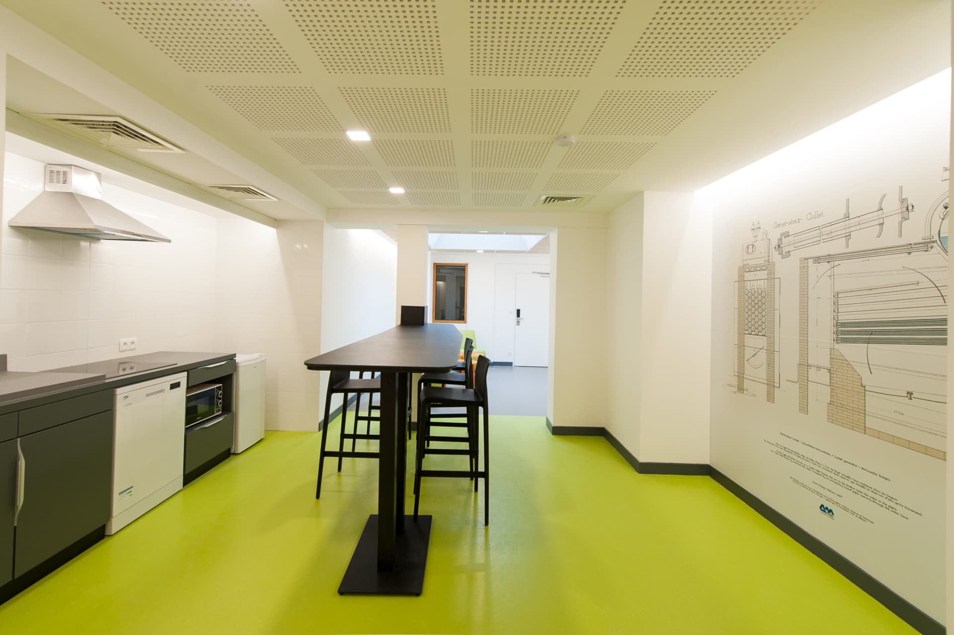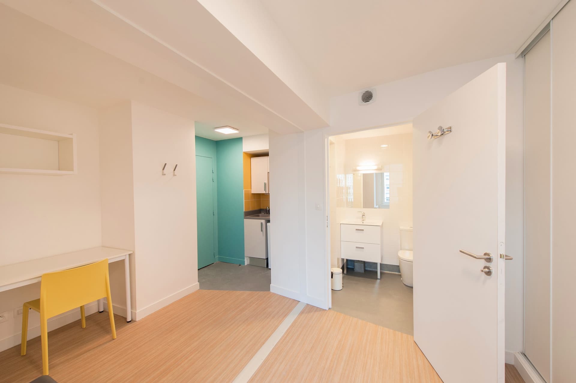 The decision was made for a complete interior renovation while preserving the image and presence of the existing facades, allowing for the creation of 255 housing units in the old house, including one staff accommodation, integrating private bathrooms that didn't exist before and bringing all floors up to code in terms of sanitation and accessibility. The new house reduces from 299 to 226 rooms while maintaining the same comfort level and including a cafeteria.