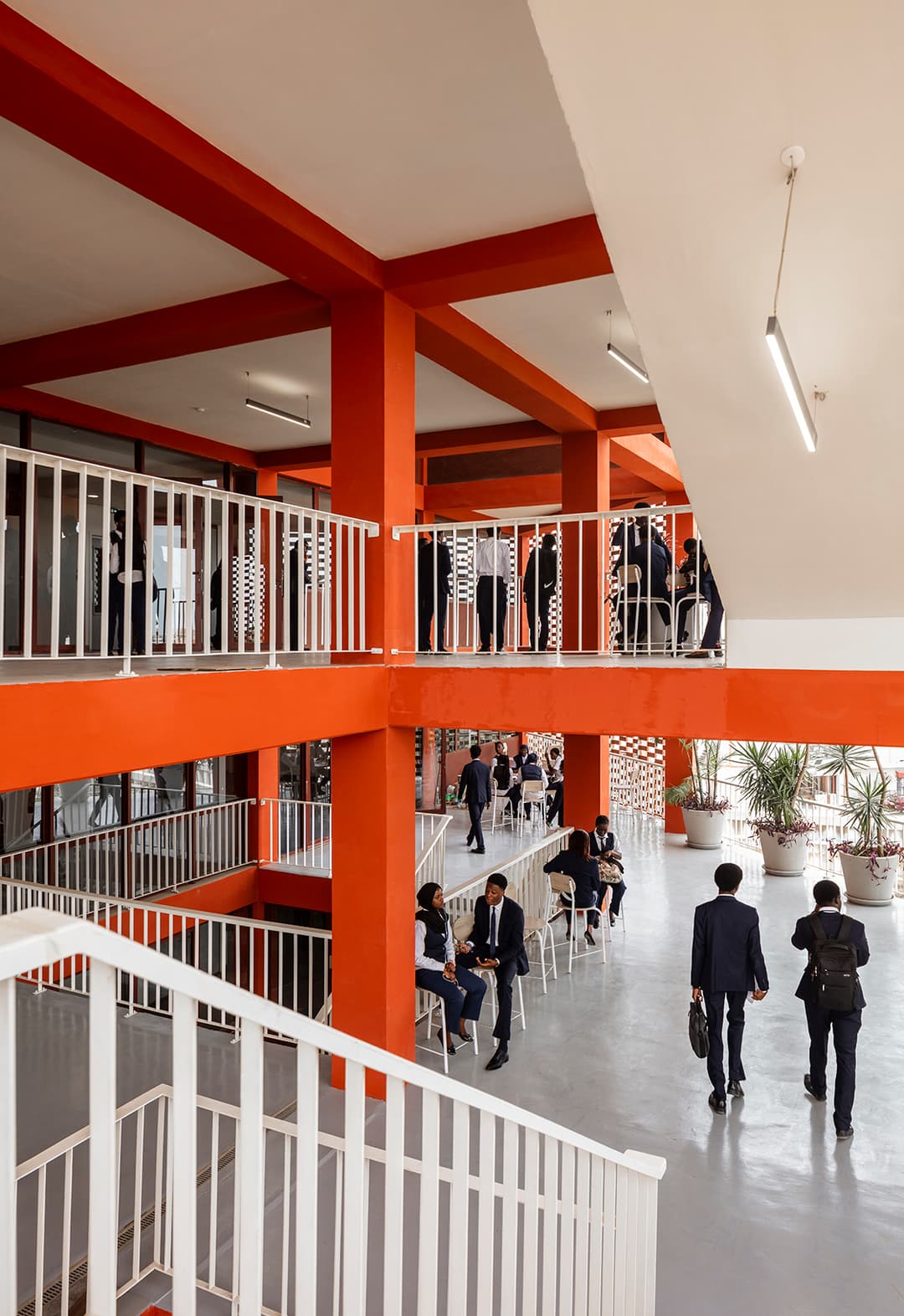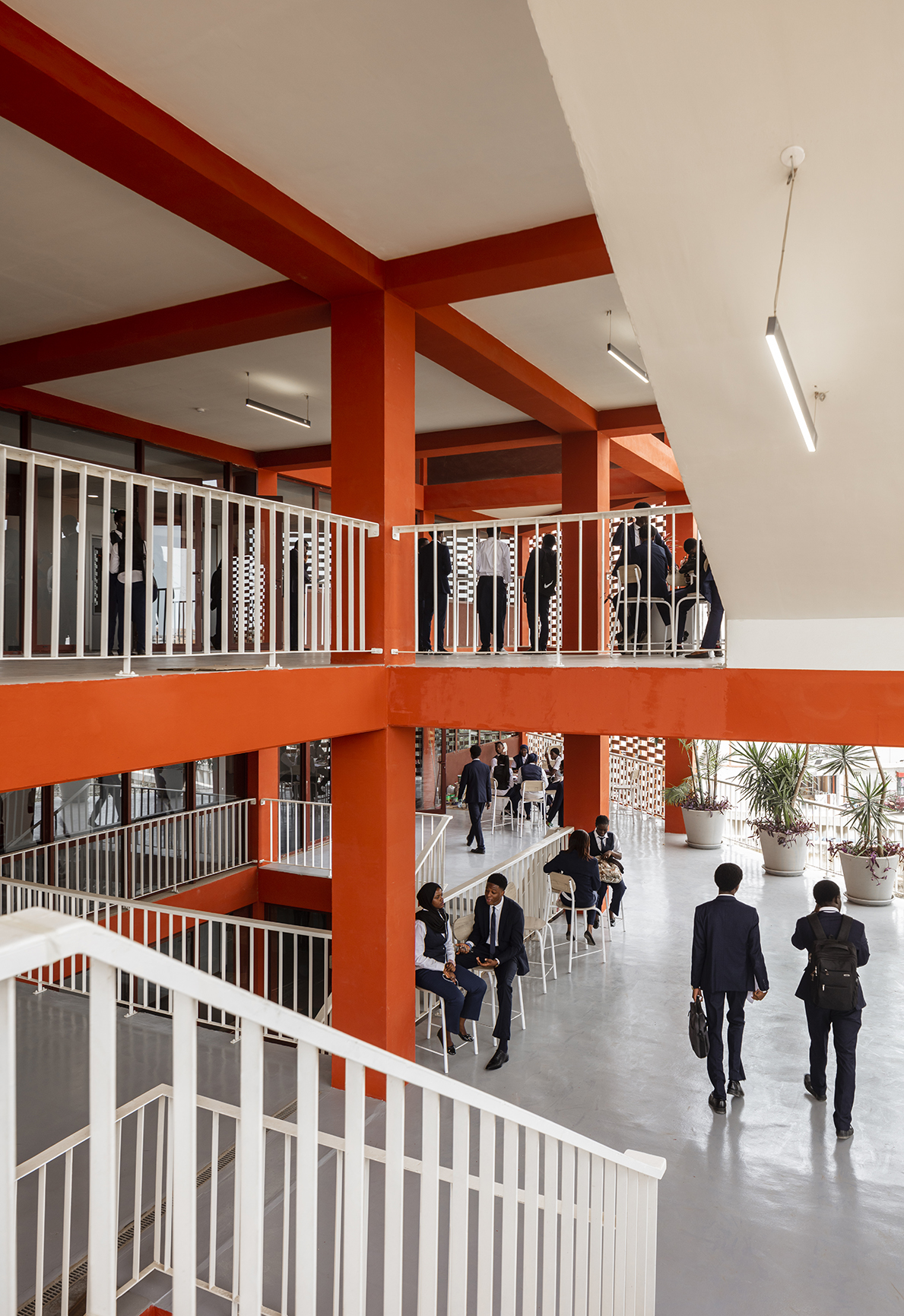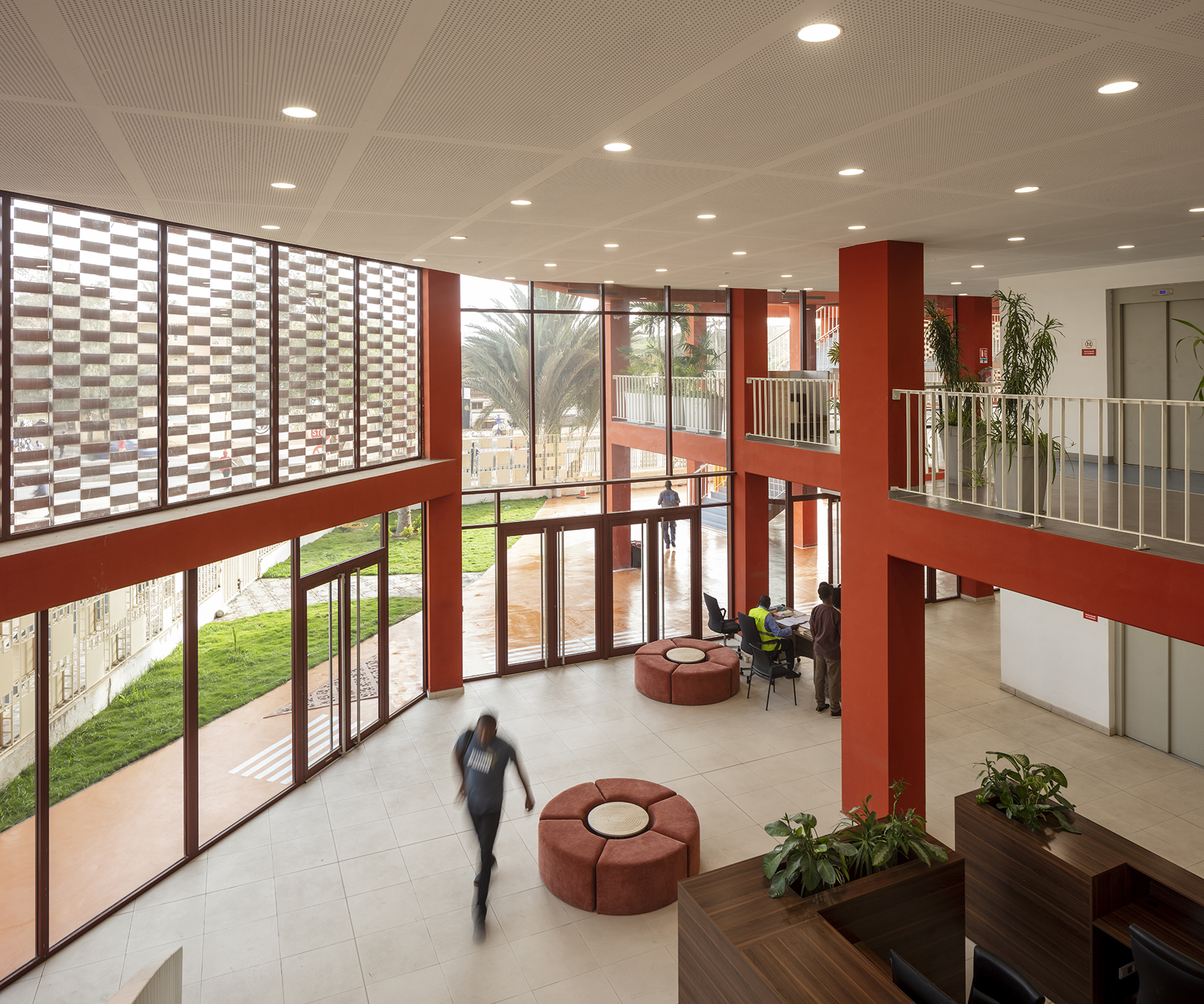 Designed as a vertical village, this campus project offers, through the materials and methods used, a controlled micro-climate achieved almost naturally by harnessing the wind and sun.