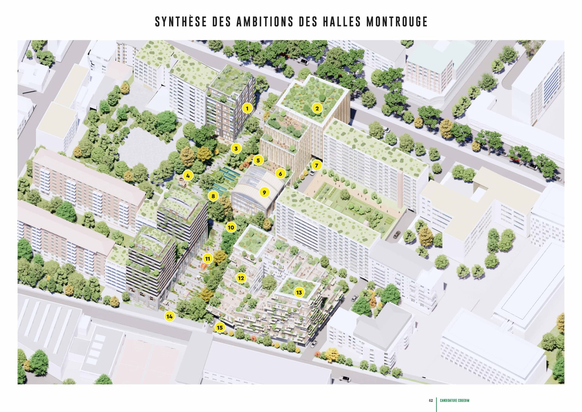 Initiated by lefebvre sarrut and the city of montrouge, the project is focused on improving the quality of life for the neighborhood's residents, it offers a unique functional mix with green spaces, shops, a covered market, a nursery and a cultural space. Special attention is given to the development of a central park of 4,300 m², designed as a community convergence point and a haven of biodiversity. The project stands out for its integrated approach, which blends urban life, culture, and respect for the environment. Les halles de montrouge aims to revitalize the neighborhood while offering quality housing adapted to the diverse needs of residents. The emphasis is on sustainability, with the use of geo-energy and eco-responsible water management. By promoting soft mobility and urban planning focused on well-being, this project embodies the vision of a peaceful, opened-up neighborhood centered on people.