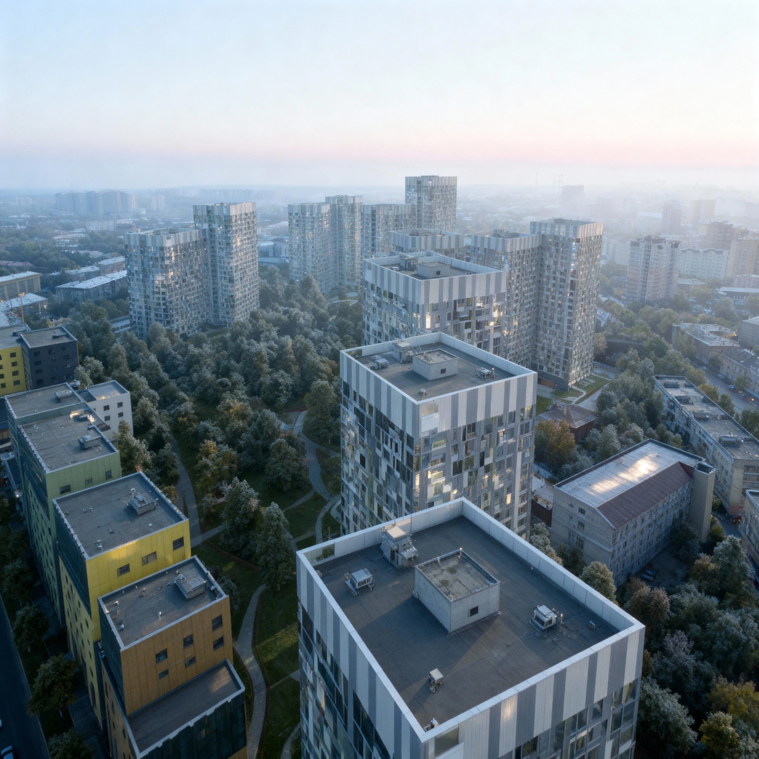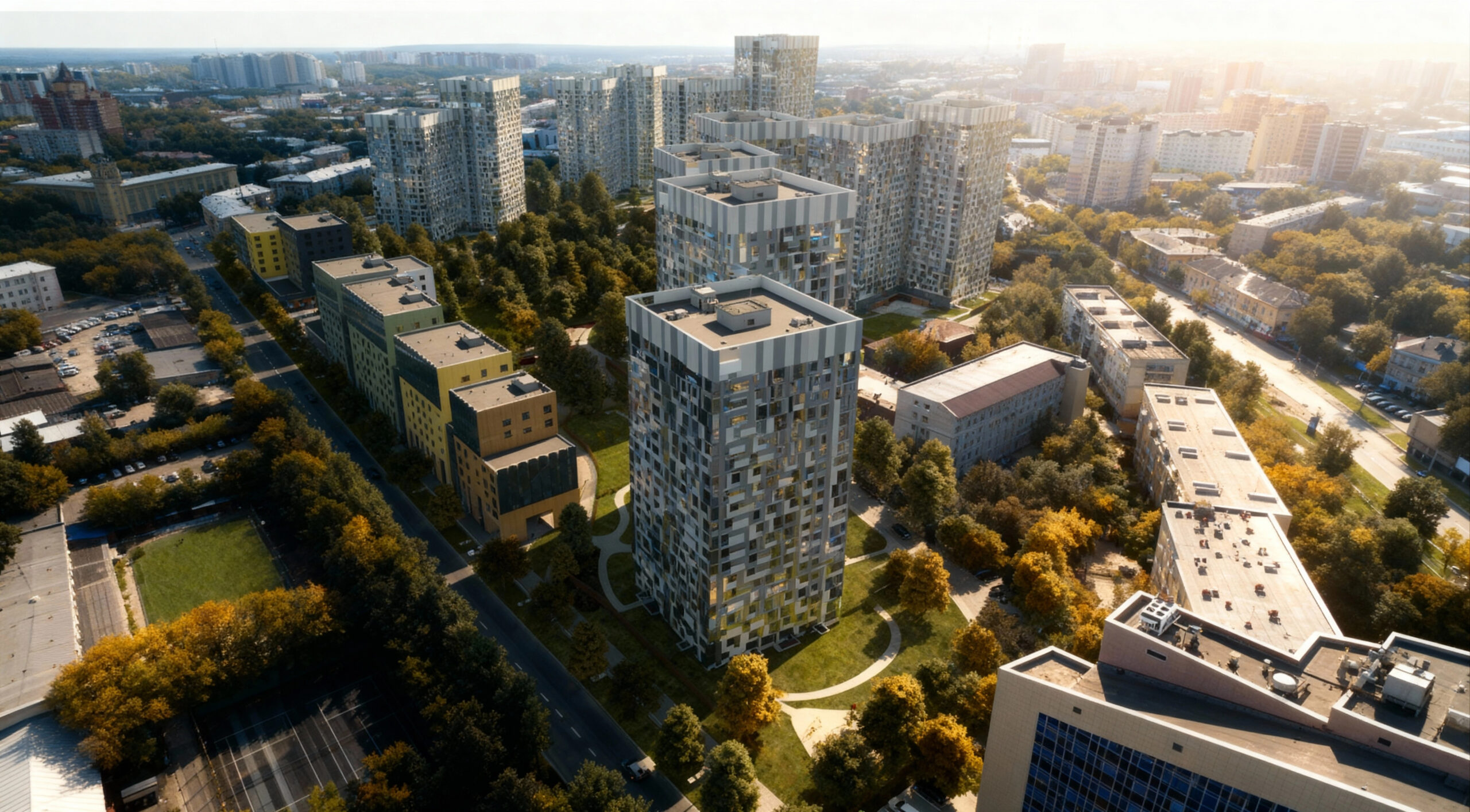 Absent from maps until the end of the Cold War, the city seeks to redefine its image, notably through culture. This includes both enhancing its significant heritage and opening the doors of the city to contemporary art. A modern art that can be found in certain museums, in the streets, on public buildings, and within other real estate developments, among which stands our project, the “Perm Arts Towers”: a residential park comprising 180,000 m² of housing and shops, currently under construction in the city center on the site of a former psychiatric hospital.