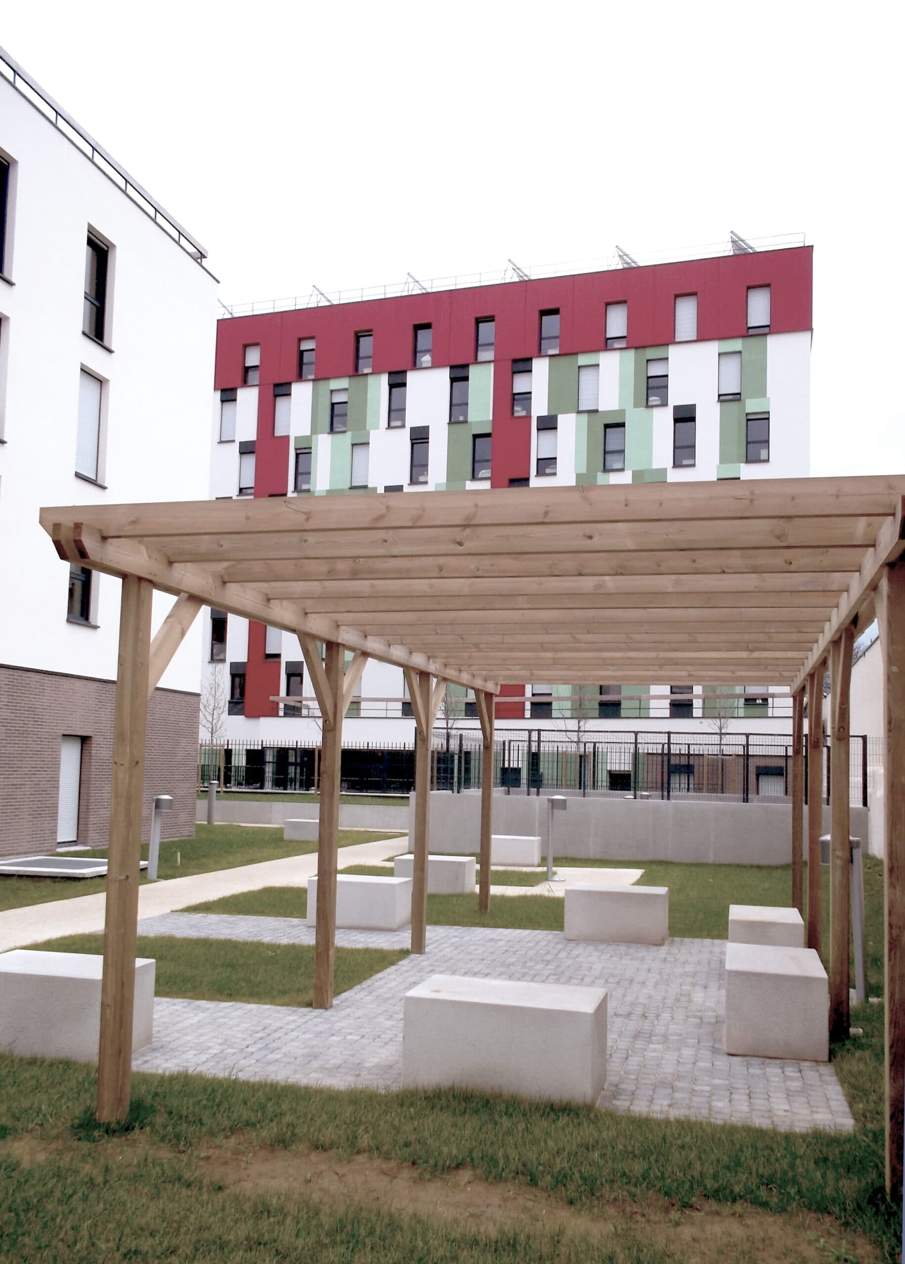 The project is located in the paul bert district of aubervilliers, facing the commune of pantin and close to fort d'aubervilliers and its metro. It consists of the creation of social and owner-occupied collective housing, a social student residence, a nursery as well as a medical center.