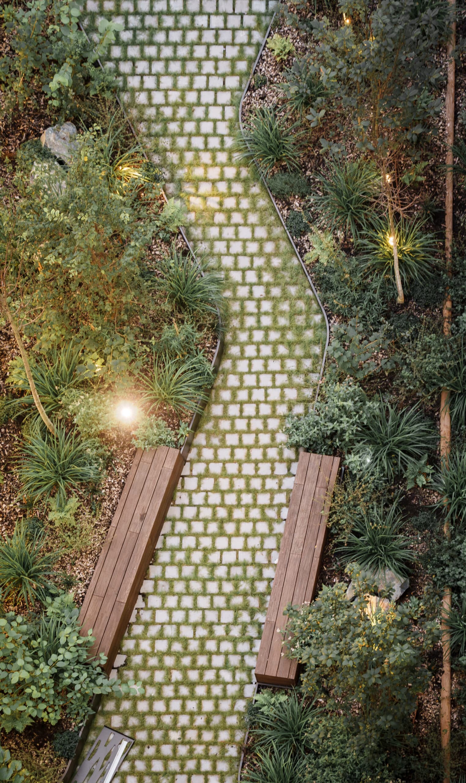 - Develop a landscaped promenade from S-1 to R+7 terraces through contrasting atmospheres.Offer vegetated spaces that generate well-being by appealing to the five senses. Wild and edible plants will be planted to promote biodiversity and invite users to appropriate the landscape.