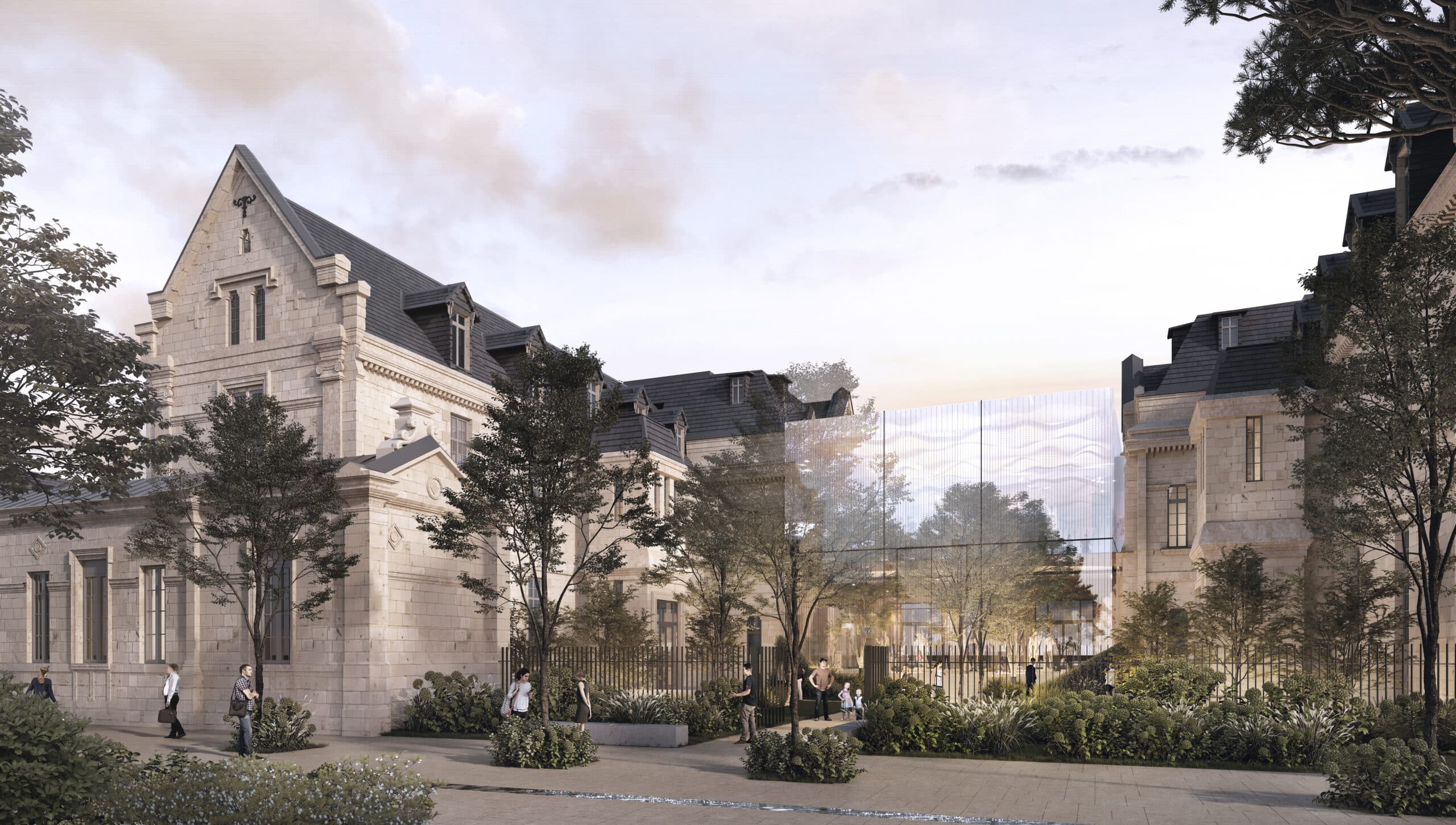 Le projet du Clos Saint-Louis, porté par l'agence, trouve ses racines dans l'histoire et la vocation originelle de l'hôpital de Saint-Germain-en-Laye. Loin de se limiter à une simple transformation urbaine, ce projet s'inscrit dans une démarche d'harmonie entre patrimoine et modernité. L'hôpital, autrefois dédié au bien-être des patients, a été le point de départ d'une réflexion approfondie sur la façon dont l'espace urbain peut contribuer au bien-être et à la qualité de vie de ses habitants. Ainsi, la transformation du quartier de l'hôpital s'inspire de cette volonté première de placer le pôle santé au cœur du nouveau quartier. Cette intégration repose sur une vision dynamique de la santé, incluant des résidences pour seniors, des services médicaux de qualité, un spa santé bien-être, ainsi qu’une unité dédiée aux personnes handicapées, le tout porté par l'acteur majeur du monde médical, ORPEA. Cependant, le projet va au-delà de la simple fonctionnalité médicale. Il s'attache à créer un véritable lieu de vie en symbiose avec la ville existante. Les bâtiments historiques de l'hôpital sont réhabilités et intégrés dans un tissu urbain respectueux, tout en laissant place à une architecture contemporaine qui se nourrit de la mémoire des lieux. Les pavillons historiques, Larmant et Gérard, reliés par une galerie continue, deviennent le cœur architectural du nouveau quartier, révélant ainsi la valeur patrimoniale du site.