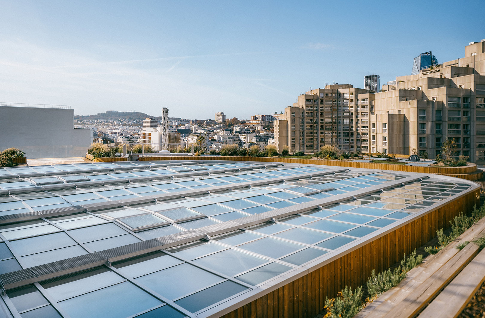 Ce projet à haute qualité environnementale se positionne comme une pièce urbaine forte et ouverte.